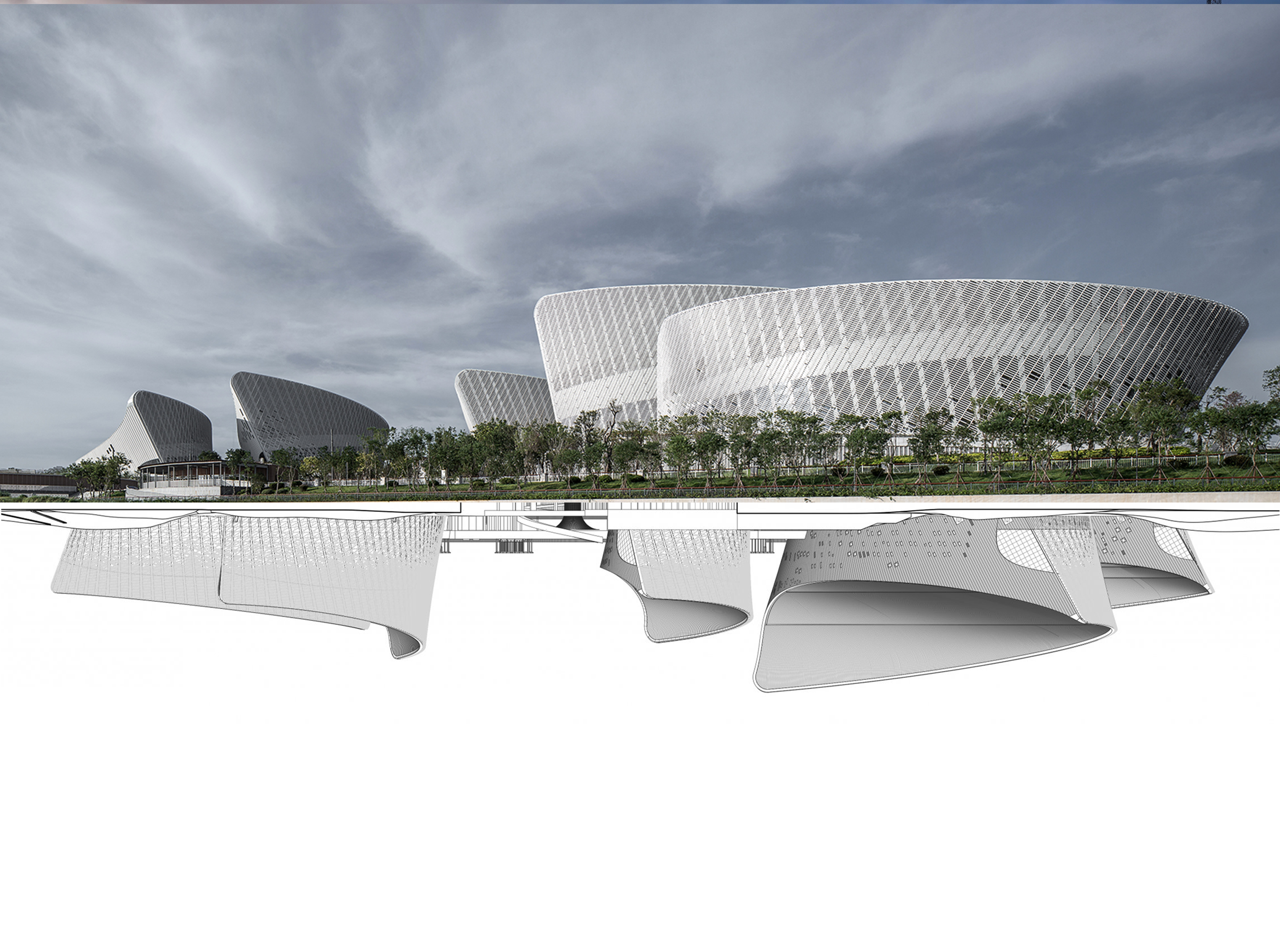 Minjiang Nehri’ne bakan Mawei Yeni Şehir’de konumlanmış, Strait Kültür ve Sanat Merkezi bağlantılara dair bir proje. Taiwan Boğazı boyunca karşılıklı şehirleri ve toplulukları birbirine; Fuzhou Mawei Yeni Şehir Geliştirme bölgesi ve su yollarını Minjiang Nehri ve doğal çevresine ve sonunda insanları kültüre bağlıyor.