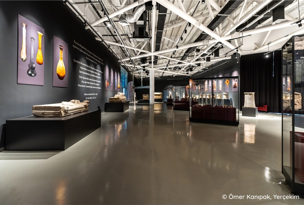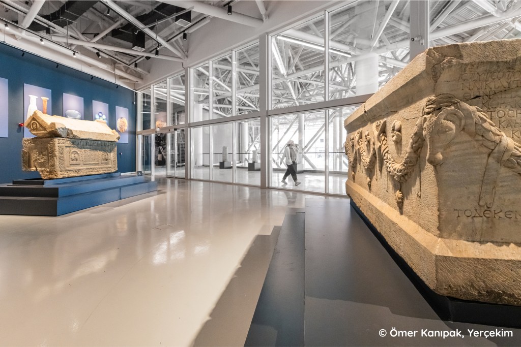 Müze yapısı 1400 m² alana yayılan kapalı ve yarı-açık sergileme salonları, bir toplantı salonu, ofisler, bilet gişeleri ve giriş, kafe, mağaza, teknik mahaller ve müze destek birimlerinden oluşuyor. Nekropol alanı boyunca dağılan gezi yolları ve platformlara ek olarak yarı açık bir dinleti çanağı nekropol alanı üzerinde toplanma ve basit performans olanağı sunuyor. Yapının giriş platosu hemen kuzeyindeki Doğu Garajı kompleksinin iki ayrı kottan bağlandığı merdivenleriyle bir meydan tanımlıyor. Bu meydandaki ışıklıklar hemen altlarındaki lahitlere bakış sağlıyor.